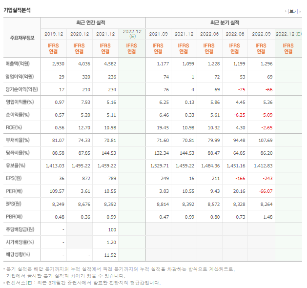 시가총액 : 1조 1,903억원 (코스피 199위)